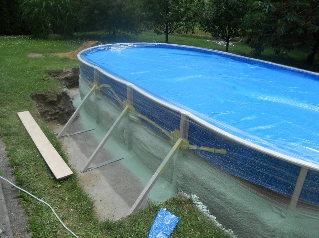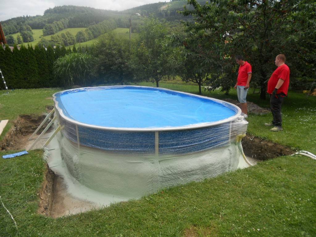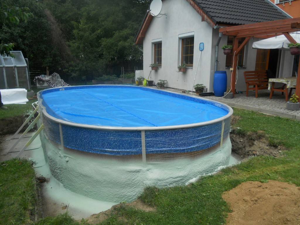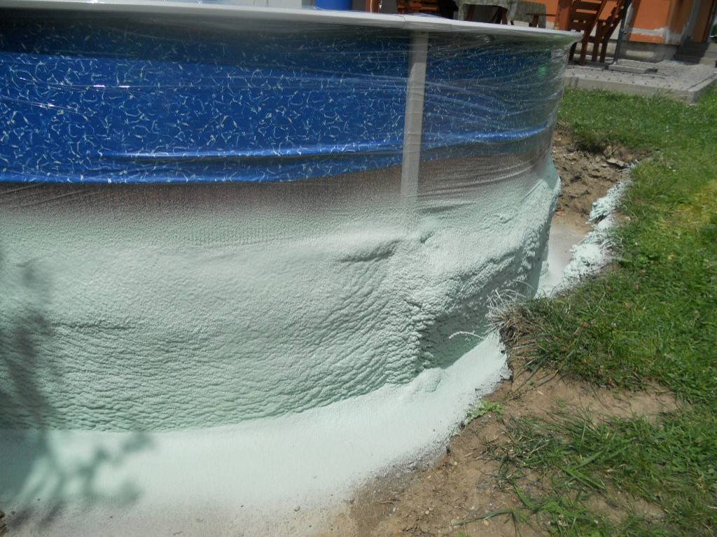 Tepelná izolace bazénu Česká VesTepelná izolace spodní části bazénu tvrdou izolační pěnou. Fotografie