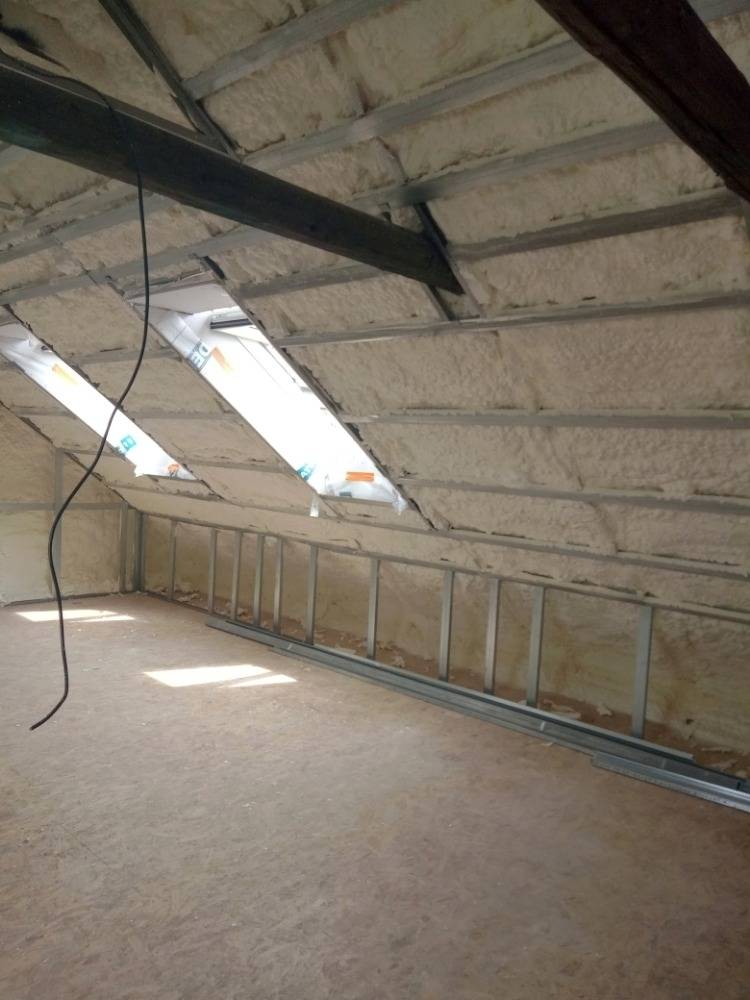 UničovAplikace měkké pěny do připravených SDK rastrů. Následně byla pěna začištěna a zaklopena sádrokartonem.