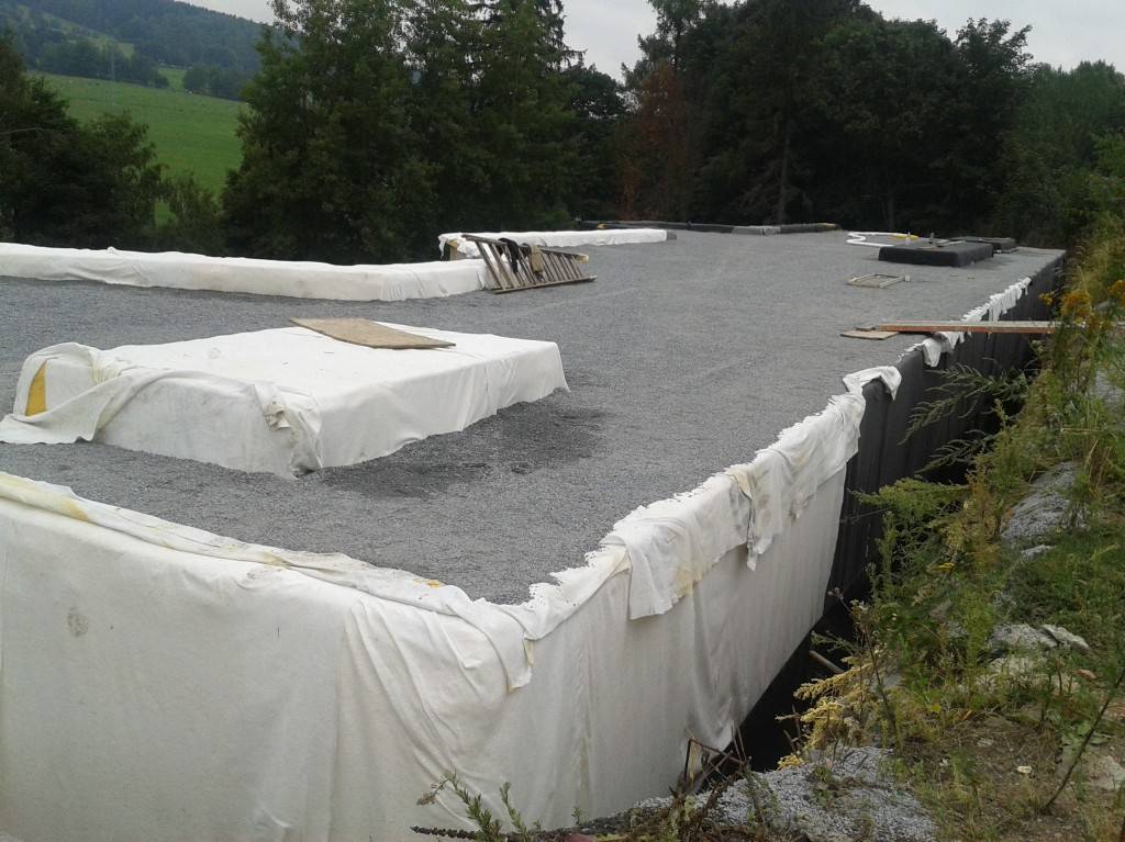Tepelná izolace a hydroizolace ploché střechy a obvodových stěn podzemního domu, Vrbno pod PradědemTepelná izolace a hydroizolace ploché střechy a obvodových stěn podzemního domu, Vrbno pod Pradědem Fotografie